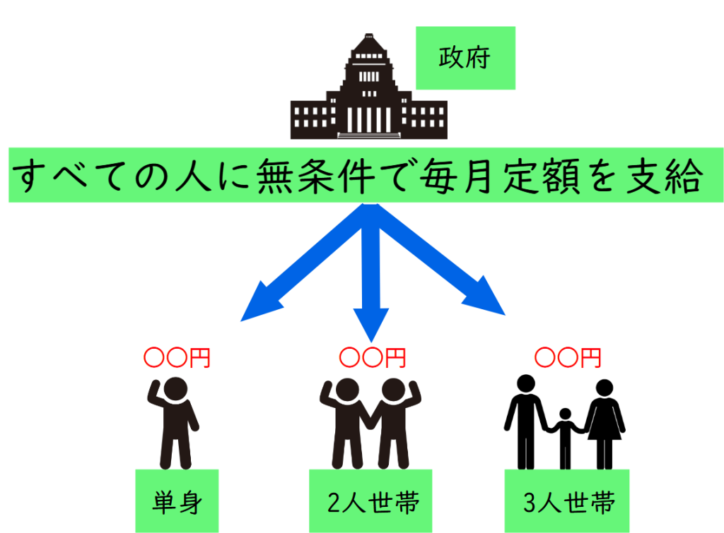 ベーシックインカムは、年齢、性別、所得、就労状況に関わらず、すべての国民に一定額の現金を定期的に支給する制度です。